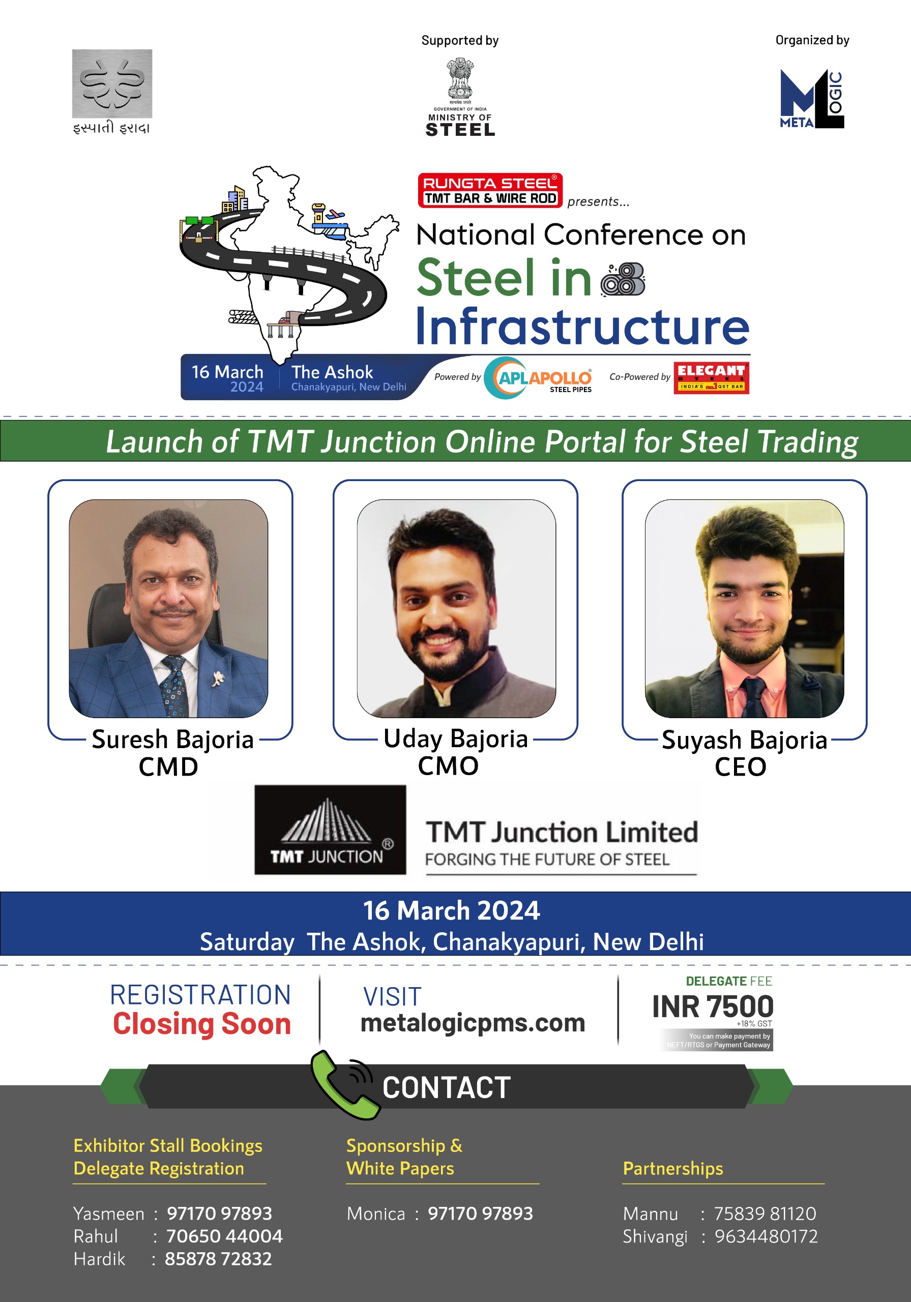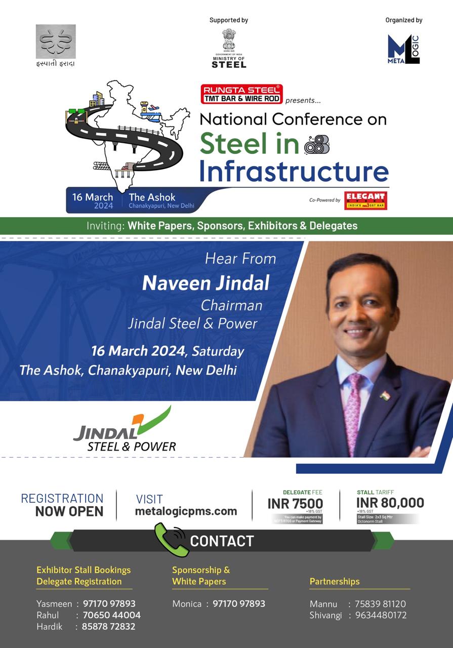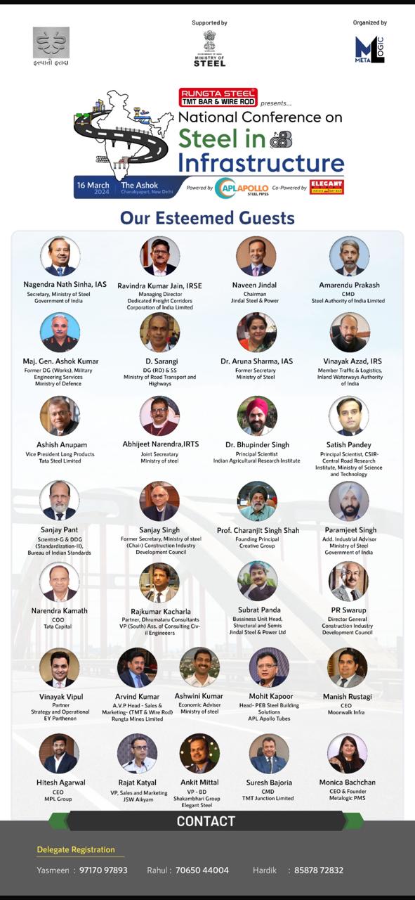 TMT Junction is Participating in "National Conference on Steel in Infrastructure" on Saturday 16th March 2024 at The Ashok, Chanakyapuri, New Delhi organised by Metalogic Supported by Ministry of Steel Government of India.