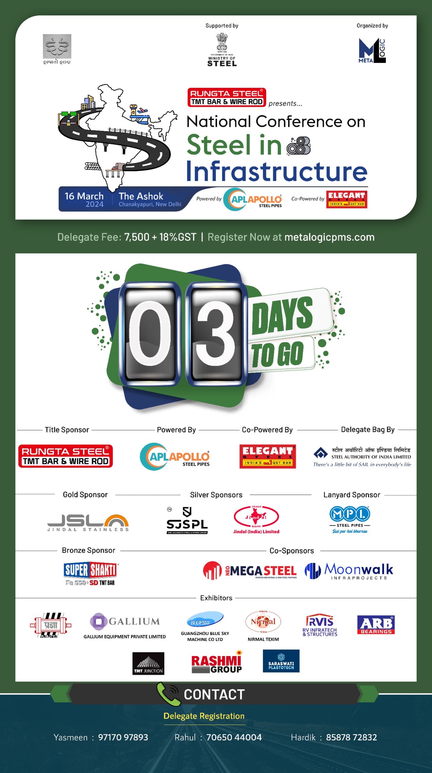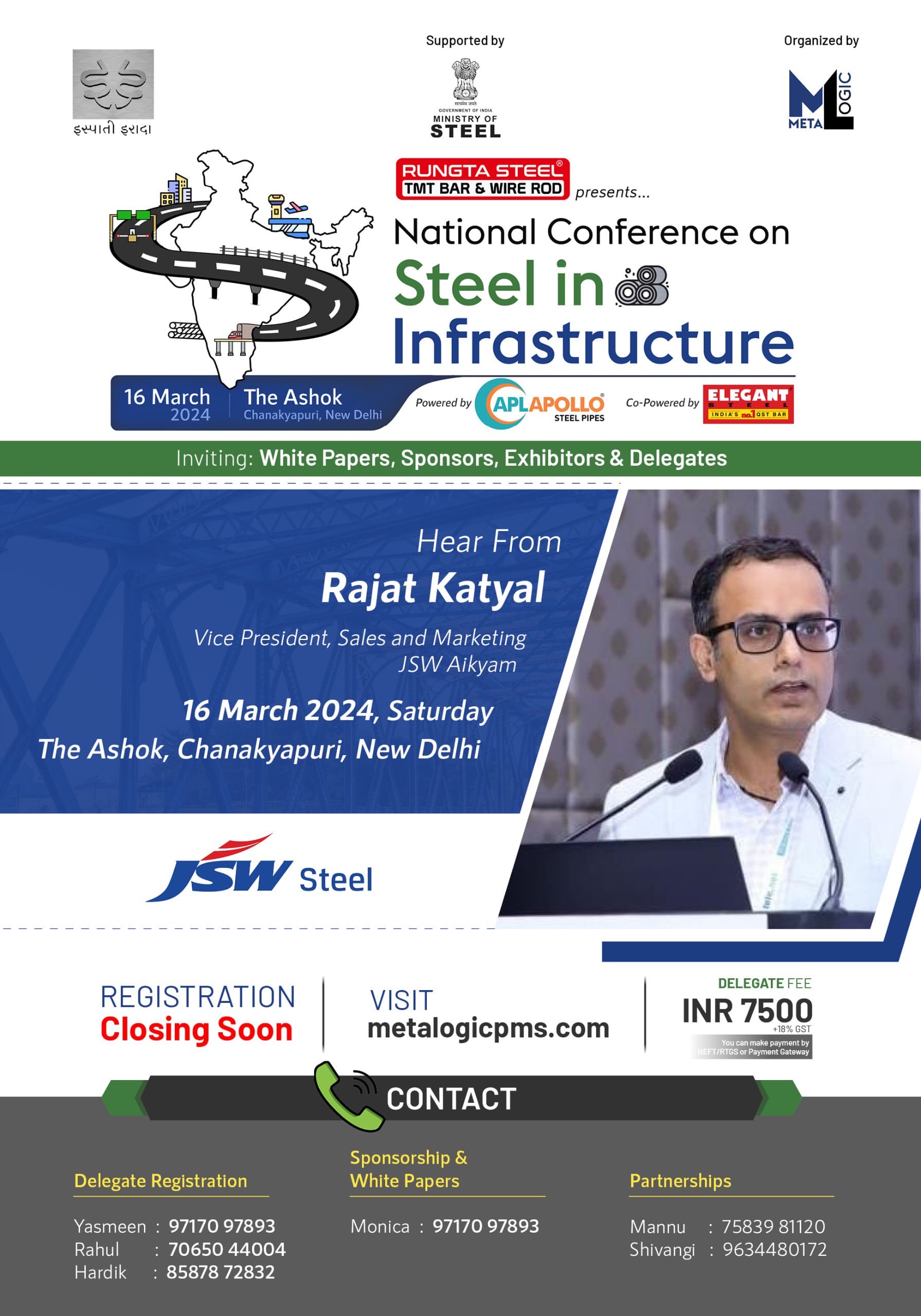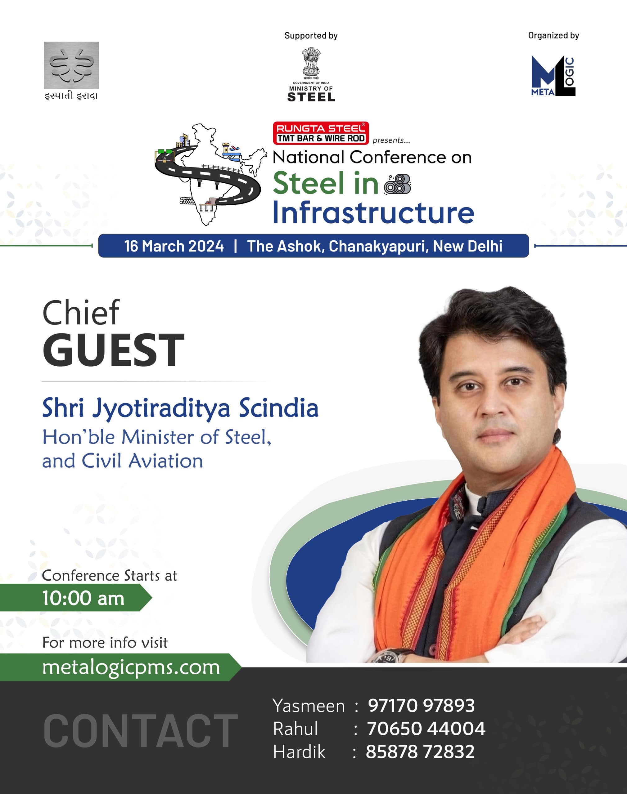 TMT Junction is Participating in "National Conference on Steel in Infrastructure" on Saturday 16th March 2024 at The Ashok, Chanakyapuri, New Delhi organised by Metalogic Supported by Ministry of Steel Government of India.